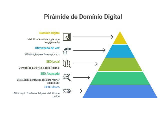 Para escritórios com atuação regional, o SEO local é fundamental. E não se esqueça da otimização para busca por voz e da performance mobile impecável.