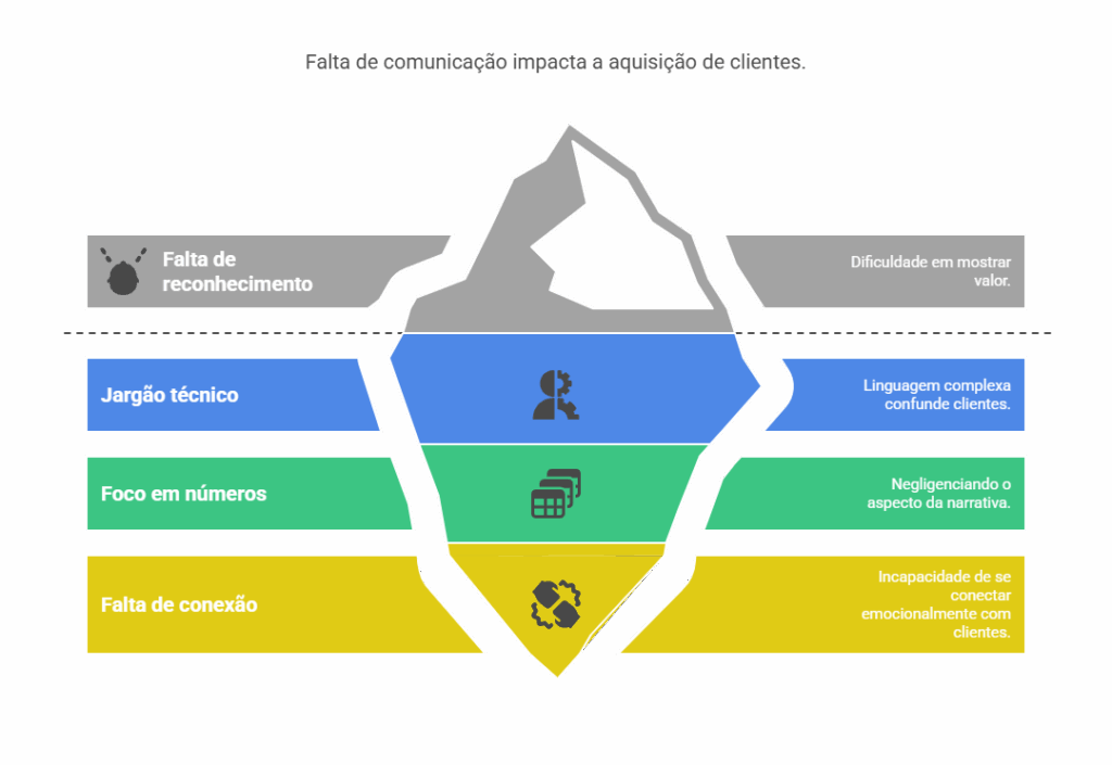 A gente se perde em tecnicismos, em jargão que só colega de profissão entende, e o potencial cliente fica lá, com cara de interrogação, pensando se precisa mesmo desse “troço” complicado.