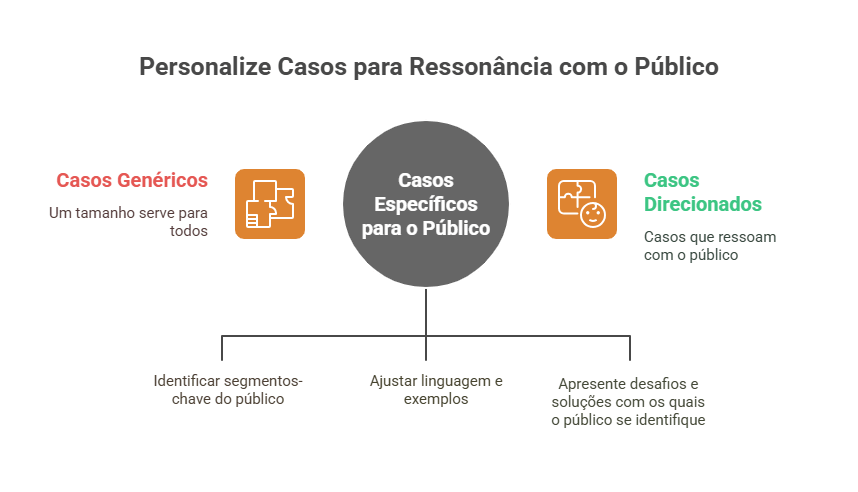 Um erro comum é achar que um único case serve para todo mundo. Pense no seu público. Você atende mais médicos? Startups de tecnologia? Varejistas? Crie ou destaque os cases que conversam diretamente com a realidade e os desafios de cada segmento.