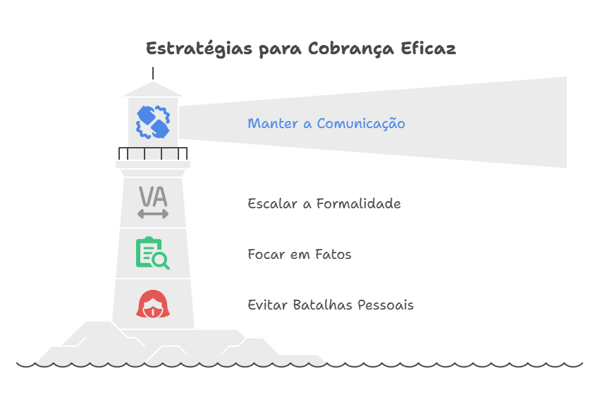 Às vezes, é preciso escalar a formalidade. Um e-mail mais sério, talvez uma notificação formal. O importante é não deixar a peteca cair no esquecimento, nem transformar a cobrança numa batalha pessoal.