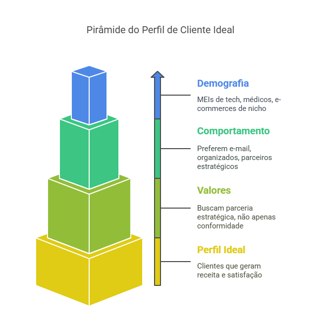 Um perfil de cliente ideal bem desenhado vai além do “MEI de São Paulo”. Ele captura o mindset de quem vê seu escritório como um trampolim para o próximo nível.